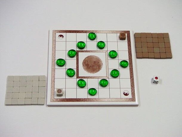 A 2-player abstract strategy game in the vein of Pente or Othello. Four types of stones are arrayed on a 9x9 board: earthstones, suns, moons, and crowns. One player plays the suns, and the other player plays the moons. Players take turns removing stones or groups of stones from the board. A player may make one of three moves: removing one earthstone...
