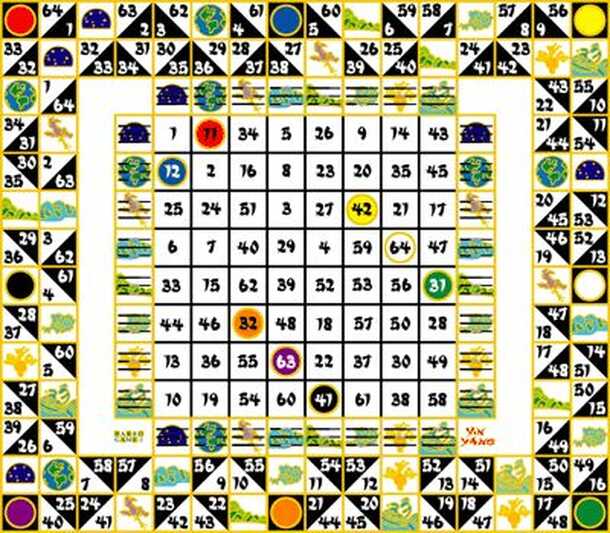 A board game for 2 to 8 players. The aim of the game is to form a lifeline using matching symbols. The first player to form a lifeline when he places his last stone is the winner. Chinese sticks (dinner-things) are used to allow fate to determine a lifeline. Anticipation and planning largely determine the chance of success. The element of chance means that...
