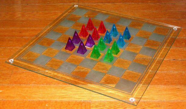 Zagami is a game of Martian microbial life for four players. It requires a standard chessboard and a set of Icehouse Pieces. Each player controls a single-colored colony of microbes, which moves and expands across the small meteorite in search of food. Multicolored stacks begin to form - microbes eating microbes eating microbes. As the game progresses...
