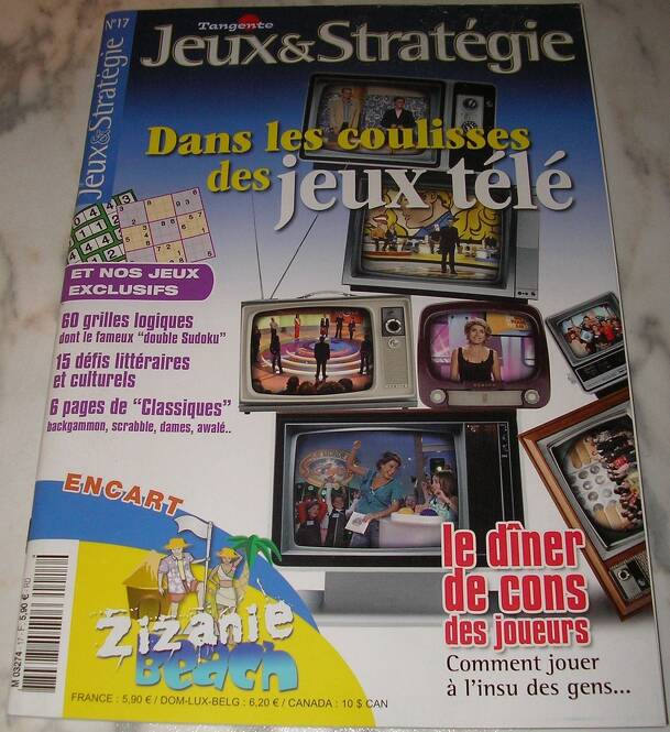 This game comes with Jeux & Stratégie magazine n.17 (January/February 2006) In what is ultimately an abstract game, two players, each representing a male, compete on an evolving archipelago (which they build in the beginning of the game) and aim to end up isolated with the only girl on the set of islands. On his turn, the player must first move his own...