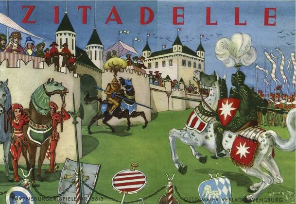 The board of this game shows a grid of straight and diagonal lines. 39 of 60 intersection can be occupied a playing piece, the others can only be used as temporary stopover. Each player has 3 tin figures: 1 knight, 1 lansquenet (mercenary soldier) and 1 archer. Object of the game is the capture of the opposing citadel and holding it during one turn. All...