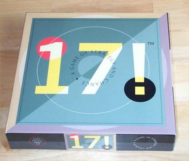 The game board in 17! consists of three home spaces for each player and several "regular" and "safe" spaces connected by paths. On his turn, a player rolls two dice and moves two of his seven pieces (5 pawns and 2 queens) along the paths from space to space. Each piece moves a distance equal to the result of one of the dice. (Instead of moving two pieces...