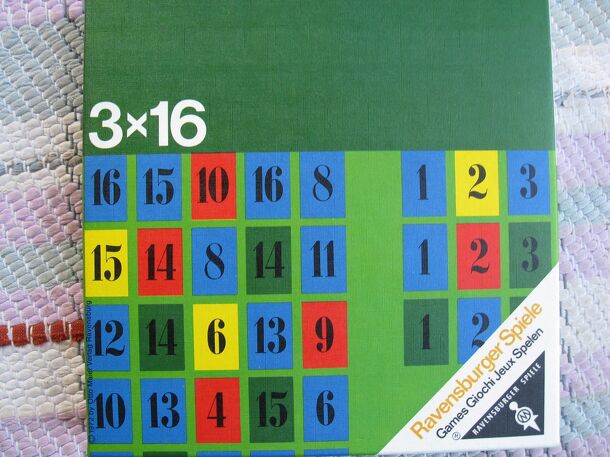 Summary An abstract game in which the numbers 1-16 have to be arranged into rows, using five auxiliary columns and careful planning. Aim of the game Each player tries to lay three new rows, each of them starting with 1 and ending with 16, with all the numbers in between in their correct sequence. The player who first completes his/her three rows wins the...