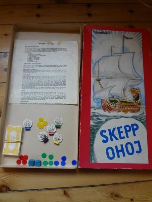 Players take the part of captains of cargo ships transporting merchandise over the North Sea during WWII. The board is perforated and placed over an undulated plastic landscape so that certain areas become shallow. For each of the four different orientations of the board there is a map depicting the shallow areas. Two patrol boats move randomly around the...