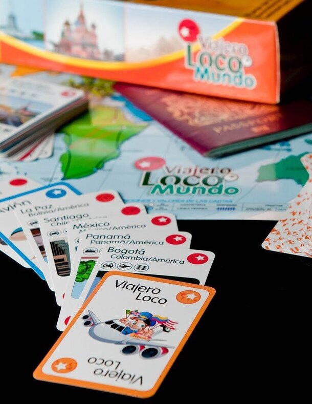 En "Viajero Loco" tienes que completar tu viaje primero que los demás jugadores. El mapa representa la geografía colombiana y los modos de desplazarse por ella (Avión, Tren, Barco, Caballo) Cada carta representa una ciudad o un medio de transporte y tienes que conectarlas antes que alguien más lo haga. Quien primero se deshaga de todas sus cartas es el...