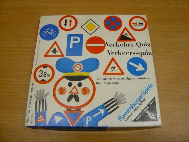 You have 50 cards with traffic signs and 50 cards with their explanation (in Dutch, French, Italian and German). And you have 8 cards with a police-man on it. Different ways of playing. Somebody reads the card, the others try to find the matching sign as quick as possible. Or you can deal the cards with signs. Somebody reads the cards aloud. You put the...