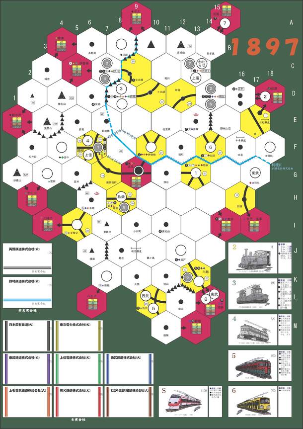 Bousou 1894 is one of the works in the 18xx series, which began with Francis Tresham's 1829 (1974), and depicts the Bousou Peninsula. The history of railways on the Bousou Peninsula (Chiba Prefecture) began in 1894 with the opening of the Ichikawa-Sakura section by the Sobu Railway Co., Ltd. This is a pen-and-paper game in which you manage a railway...