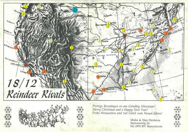The game concept found in the rules: "Your transport firm is approached by Santa Claus as a candidate for a major yearly contract. On Christmas Eve he personally delivers to all households, but he needs others to prepare local depots from which to take the gifts. Right now, these gifts are in the central depot for the country and you must get them to the...