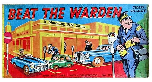 The object of the game is to get all your four cars safely parked in a meter bay. This game dates from the 1960s, when metered parking was relatively new in the UK. The board shows a network of one- and two-way roads and a number of parking bays. Using numbers rolled on 2 dice the players must move each of their cars from the starting garage to a bay....