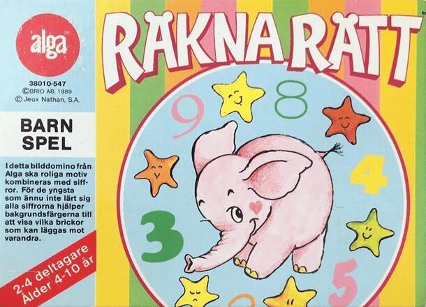 Mfg suggested Ages 7 - 9 The game consists of 36 domino tiles. One half of the tile contains a digit between 1 and 9 and the other part a picture of a number of fruits, animals or objects that are well known to every child. The tiles are shuffled and dealt. The aim is to play the tiles one by one and then trying to match the digit and the number of objects...