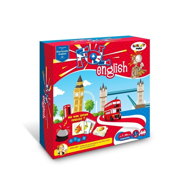 Letter-cards are shuffled and dealt to each participant in one color. Then a word is drawn and all players try to form this word with his letters. First presses the buzzerand earn the card as a point. Player with the most cards at the end of the game is the winner. Contents: 1 game board, 80 double-sided cards, a buzzer, four batches of 60 letters in color...