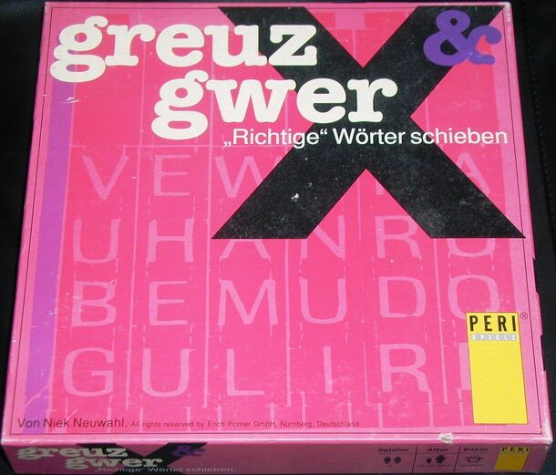 A word game played on a pad of custom game sheets. Each player has a 5x4 grid in which letters are placed. Players take turns to call out any letter they want, which both players must enter into their grid. After all the spaces are filled points are scored for words formed horizontally and vertically; words filling an entire column are worth two points and...