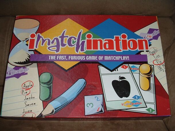 In Imaginez (French for "Imagine"), players try to associate cards in their hands with one of the 12 cards on the board. Cards represent either objects, animals, places, country, well-known persons, etc. There must be a direct link between the two cards you are trying to associate. There is a score (from 1 to 3 ) on each card. Each time you successfully...