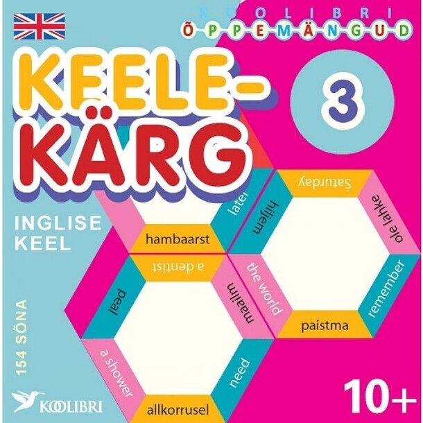 For ages 8+. The hex-tiles are shuffled and dealt to players. The first tile is placed on the table and in his turn player places tile from the hand if he is able on the table with at least one edge adjacent to previos hex. the edges of the hexes form pairs with Estonian words and English words with same meanings and they must always fit. Player who gets...