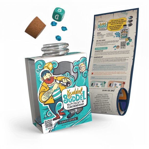 A bottle containing a letter has been washed ashore by a huge wave. Can you decode the mysterious message? Shake the bottle with the dice. Name a word with all the letters on the dice as quickly as possible. Get diamonds for correct words. Play with the effect dice for even more excitement! —description from the publisher Eine Flasche mit einem Brief wurde...