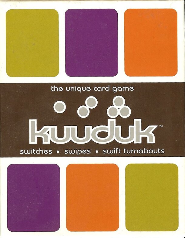 In the game of kuuduk, the object is to be the first player to spell out the word k-u-u-d-u-k by laying down 6 lettered cards, connecting them by color or by number. Simple enough, right? Don't be too sure! As the game progresses, the frenzy builds as players turn on one another discarding switch and swipe cards. No play is ever safe, because in kuuduk...