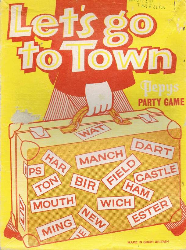 Party game. The host places syllables all round the room. Players are instructed to find three syllables that make up the name of a British town; e.g. Ed-in-burgh. There are 33 towns listed on the host's Key Card, all made up of three syllables. If you can make a town out of the syllables, you take it to the host who records you with 1 success and he will...
