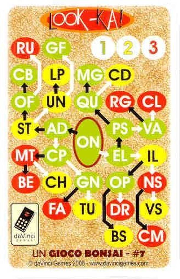 Lookee is the "Search-A-Word Game", for 2 or more players, that can be played by those of all ages. The game consists of a plastic tile board and 100 various tiles each with a letter and point assigned to it on each side. The game has five different variations of play. In Game One: The grid begins empty except for the word LOOKEE spelled out in the center....