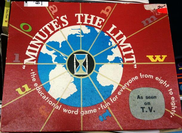 "The educational word game. Fun for everyone from eight to eighty. As seen on T.V." Minute's the Limit is a word game played over several rounds. In this game, players must write down, under each of five "subject titles", either a place, name, subject or thing that commences with a particular letter of the alphabet. Both subject titles and letters are...