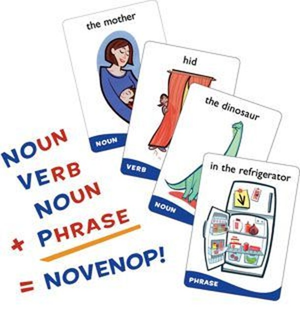 (From publisher's website) NOVENOP is an acronym created from the words NOun, VErb, NOun, and Phrase and is a board game for children of ages 6 and up. NOVENOPS! has 60 cards that help develop the player's ability to understand the basic elements of grammar. Gameplay is designed to continuously reinforce the sentence structure concepts...while word...