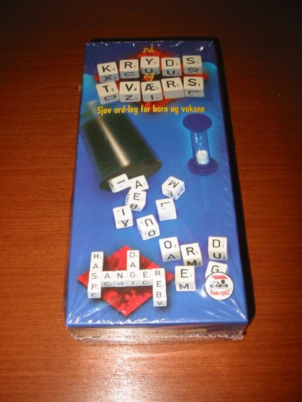 This is a Danish word game using thirteen dice showing letters, including Danish characters (æ, ø, å). Play is similar to Spill and Spell, where players try to fit letters into words crossword style, and points are deducted for letters that are not used. However, unlike Spill and Spell, letters have different point values. The game comes with 13 wooden...