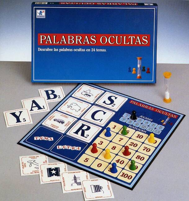 A game in Scattergories's line, published in 1990 by Borras Plana S.A en España. The players (or teams) have to write many words that begin with the corresponding letter and of the category of the indicated letter, before the sand timer runs out. It has 24 topics and different letters. Play for 12 turns. --- Un juego en la línea de Scattergories, publicado...