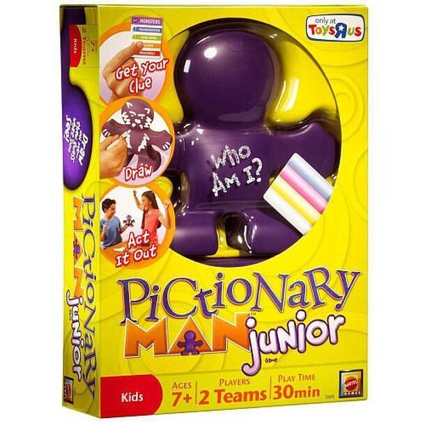 Pictionary Man Jr. features easy-to-hold pieces of chalk and sketch directly onto the smaller-sized purple figure. It is played in teams. Players are given a clue that they need to portray. They can draw on the man and props and then move both of them in order to act out the clues for their teammates to figure out the clue before time runs out. Whichever...