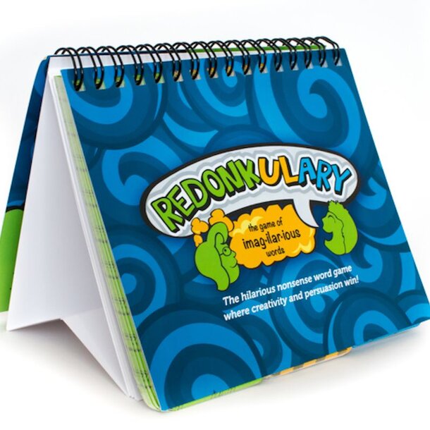 Redonkulary® is the hilarious nonsense word game where creativity and persuasion win! This portable game includes 60 spiral-bound word-part cards with over 200,000 possible combinations. Score sheets included. Laughter guaranteed! Ages: 9-99. Number of Players: 3-8. Play time: 10-45 minutes. MADE IN USA Redonkulary® is Easy to Play! One player goes first...