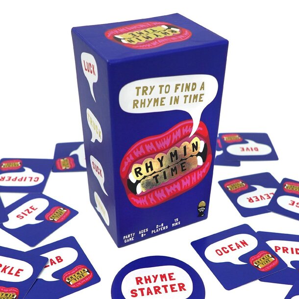 Gameplay in Rhyme Time is simple. Turn six cards from the deck face up so that all players can see the 24 pictures of simple objects on these cards. At the same time, all players start looking for objects whose names rhyme with one another, such as shampoo – kangaroo or doll – ball. Everybody is trying to be the first one to find a pair that rhymes, and...
