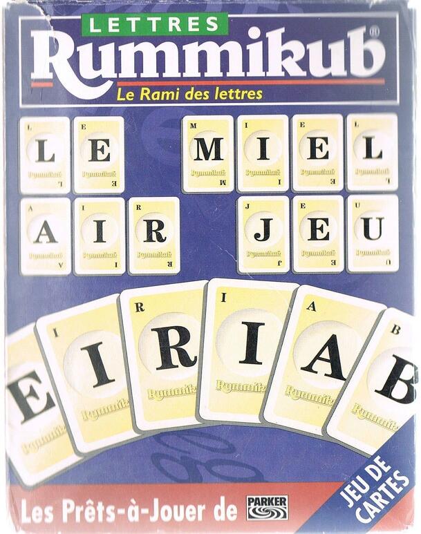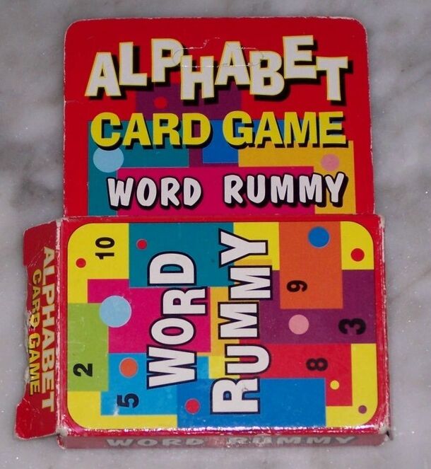An early game of rummy with words. The deck has 78 letter cards -- the entire alphabet in each color (red, green, & blue). Each letter has a point value from 1 to 5, commoner letters with higher values. Deal 7 cards each for 6 or less players, 6 each for 7 players, 5 for 8 players, and turn up the top of the draw pile to start the discard pile. In a turn...