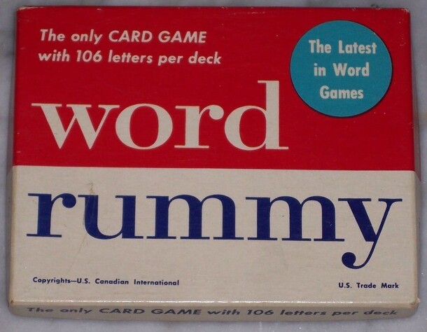 A rummy-like word card game that was approved by the California Dept. of Education. The deck has 72 cards 68 cards with a letter and a value (2-9), and 4 jokers which act like wild cards. The basic game is Dealer's Choice: the dealer chooses how many to deal per player, and announces the winning condition, e.g. "Make one word using all 5 cards", "Make two...