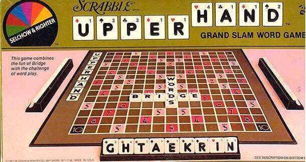 Players compete for high score by forming words, only in this version there are bridge aspects such as bidding and trick-taking. Tiles have suits on them. A Yahtzee-style scoring notepad is included, which contains boxes to fill out for contracts, declarations, trick scores and word scores. All in all, Upper Hand is a strange meld of Scrabble and Bridge, a...
