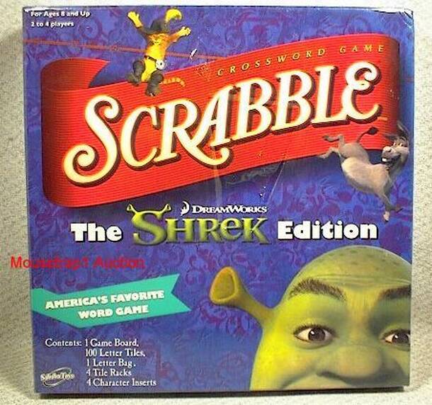 Scrabble The Shrek Edition is a themed Scrabble game around DreamWorks's Shrek series. The game features various characters from the Shrek series on the board as bonus zones. The game is unique from regular Scrabble by the way it is shaped. Instead of being square, the board is shaped around Shrek's head, including a rounded bottom and top, with two...