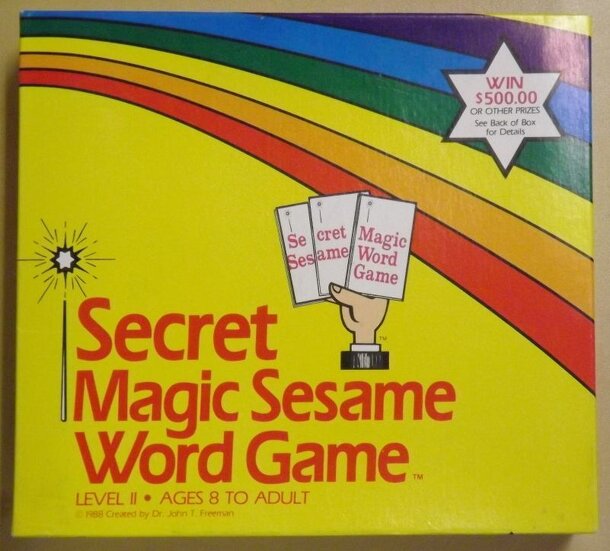 [From the rules] Level II of the Secret Magic Sesame Word Game consists of 168 cards in 3 decks: 50 vowel cards, 50 consonant cards, 50 letter combination cards, and 18 Knuckle-head cards which are mised into the 3 decks of cards - 6 per deck. Eleven of the letter cards have Special Stars on them and are also mixed among the three decks. there are 150...