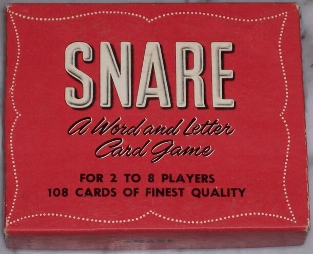 Essentially this is Rummy played with 108 lettered cards. There are 26 red letter cards, one for each letter of the alphabet, 74 blue letter cards, and 8 wild cards. Players meld words of three or more letters, add to their own or opponents' word melds, and can capture others' melds and add to or rearrange them. Minimum count of 100 to go out. The game...