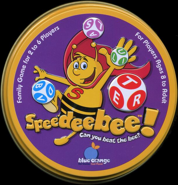 In Speedeebee!, players race to complete challenges presented to them while using – or not using! – the letters rolled on four dice. Each round players are presented with a challenge on one of the fifty challenge cards; each card has three challenges, and the challenge to be used is determined by the color on the back of the challenge card previously won....