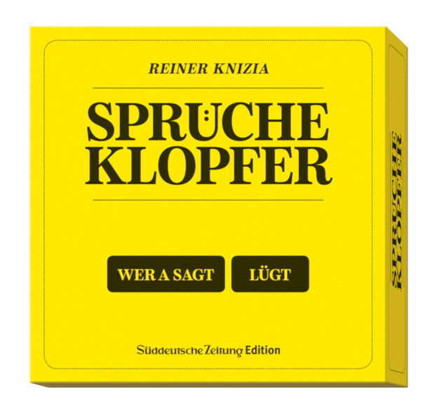 A trivia game in which proverbs/sayings have to be completed. Each player puts a player token on one of the empty spaces on the board. Players then take turns rolling the die and move their pawn accordingly. If they land on Hein-Blöd space, they roll the die again to decide which of the six proverbs/sayings printed on the top card they will have to...