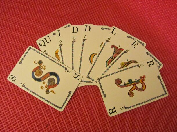 Players draw two cards and discard one with the goal of forming one word of at least 7 letters and all other cards in hand (if any) forming a word or words of at least 3 letters each. Using the colorful alphabetical card deck published to play Quiddler ("The Short Word Game"), Squiddler is for players who enjoy a challenge with longer words. The name of...