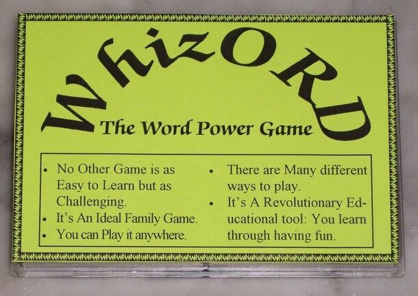 WhizORD deck has 108 cards, each having a letter of the alphabet, and a value from 1-10, rarer letters being worth more. Rules for several games are included: Poker-WhizORD: Like draw poker with 7 cards and one draw per hand. The player with the highest-scoring words adds it to his total. Alternate rules add chips and betting typical to poker, with up to 3...