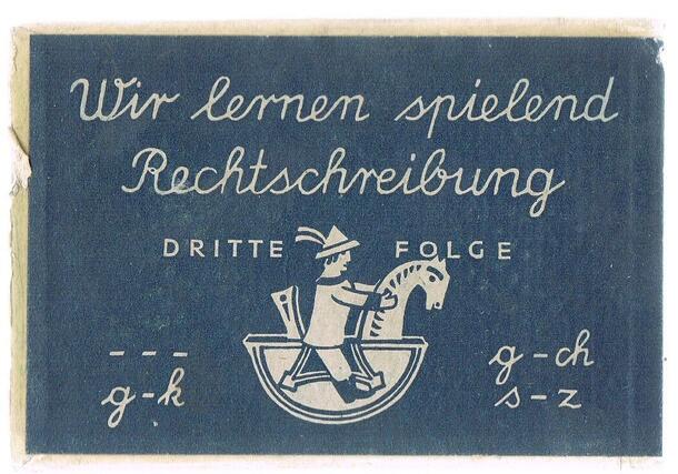 Game designed to let children test their powers of the German language. The cards are dealt out evenly (any number can play). In a turn, a player must ask another player to answer correctly the top card in one of three categories; Words that end in g or ch? Words that end in g or k? Words that end in s or z? If a player answers with the correct spelling...