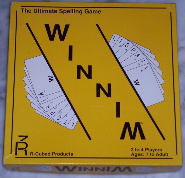 A word card game in which you lay down and/or add to words from your hand. The unique feature of WinniM is that each card can stand for a vowel or consonant, depending on which end is up. The 105 cards have all possible combinations (5 x 21). This adds an extra dimension: in addition to rearranging letters as you add to your words, you can flip the cards...