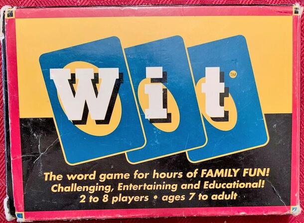 Wit is a simple card game where players start with nine cards in their hand. The object is to be the first player in a round to use all of the cards in your hand by forming words of 2 or more letters and eventually win the game by scoring 25 points. Players score points on the number of letters in a word - the more letters, the higher the score. Players...