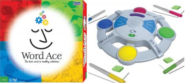 Manufacturer's Description: Word Ace is the electronic word racing game seen by millions- a final four finisher on the American Inventor television show! Word Ace gives players a letter and number (A, 9) and they have to be the first to find a word that meets certain criteria, such as "a word that starts with 'A' and has 9 letters" (Armadillo!). Multiple...