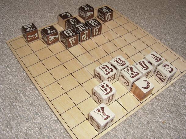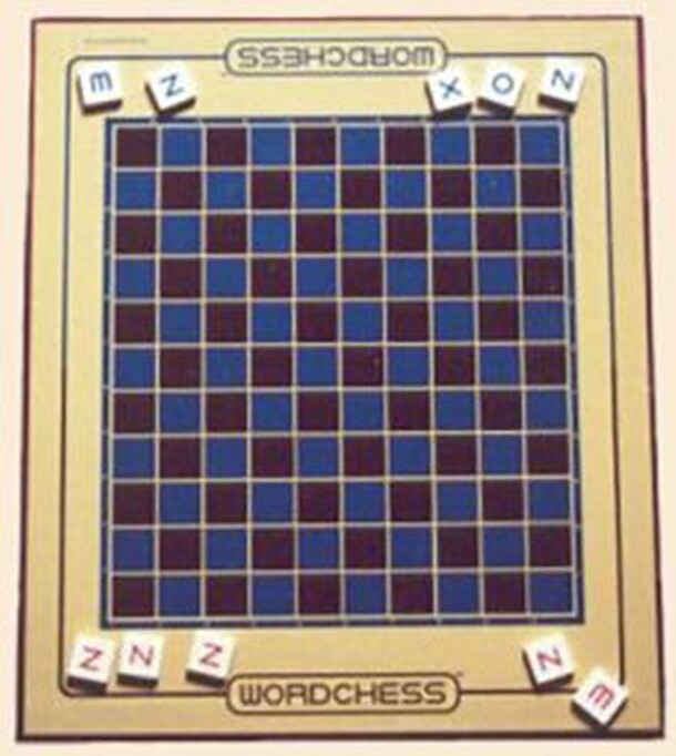 Although the legal moves in this game are defined by a list of 88 words, Word Chess is more like a battle than a word game. Players have contrasting sets of tiles, and each turn they place tiles on the board or move existing tiles, four at a time, on squares of their own color. Each set includes one X and five each of N (which can be rotated to form a Z)...