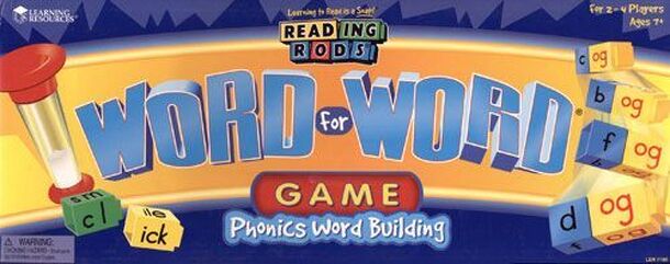 From Discovery Toys: "In a fast-paced race against the clock, build as many words as you can and strengthen phonics and spelling skills. Players at different reading levels can play at the same time using specified combinations of colored rods. Or practice with basic word families, rhyming words and blended sounds at your own pace with the included...