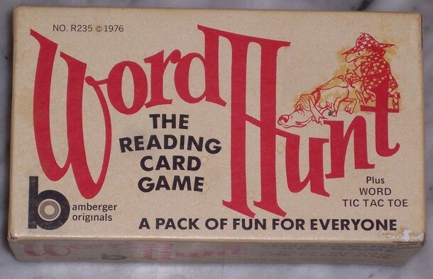 A different sort of word card game, where word fragments are combined in a search for valid English words. It contains a deck of about 60 orange cards, each with 1-3 letters that start a word; and about 120 yellow cards, each with 2-4 letters for the end of a word. When an orange card is placed atop and at right angles to a yellow card, the letters combine...