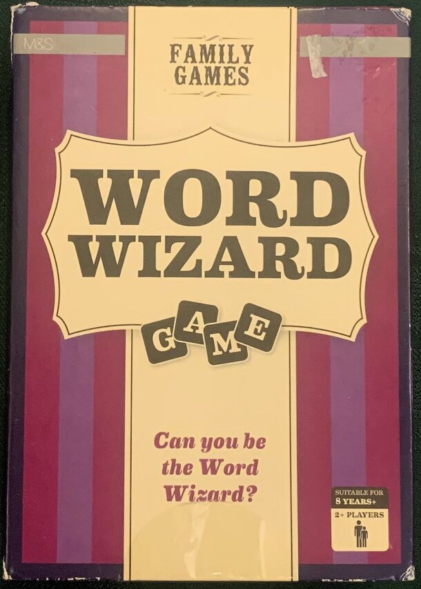Word Wizard has 40 cards, which are sorted into separate piles of 10 vowels and 30 consonants. On their turn, a player chooses 6 cards from those piles and places them face up into the tray, then everyone has a minute to write down as many words as they can think of using those 6 letters. A player's score is one point per letter in each valid word they...