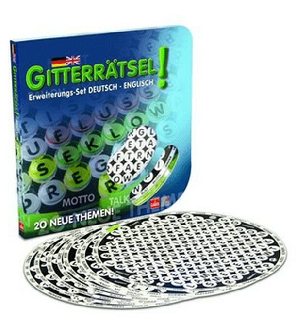 The Gitterrätsel! German-English Expansion Set is an expansion for Gitterrätsel!. English words and their translations in German letters are hidden forward and backward, horizontally and vertically, and diagonally in a tangle of letters. The object is to find the solution to the puzzle in the grid. This game can be used to help teach children the...