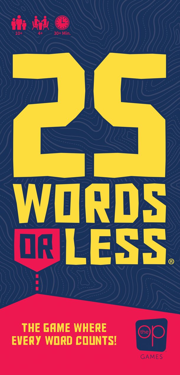(from the web site) The all-new edition of the award-winning 25 Words or Less. You've got 1 minute and 25 words (or less!) of clues to get your teammates to shout out the five words on the card. Great party fun for groups of all sizes. Ages: Teen to adult Players: 4 or more players Contents: Deck of 288 cards, countdown board, 1 minute sand timer, and...
