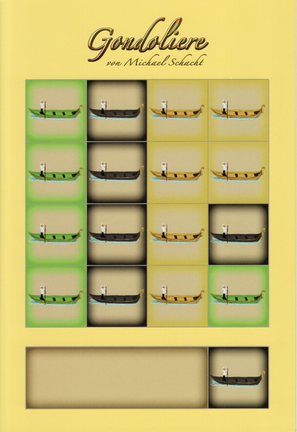 Giveaway from Nr. 77 of Spielerei Act as a gondolier and try to transport as many tourists as possible. Extend canals. At every edge there are tourists waiting to spend their money traveling with your gondola. The one who builds landing stages on different routes and transports the most tourists wins. Contents: 45 tiles with landing stages in 5 colors 44...